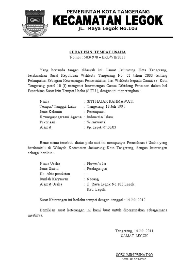 Surat izin tempat usaha nomor: Kepala kantor perizinan surat izin tempat usaha (situ/ho) terpadu kab. Tempat download contoh surat izin usaha. Ada yang harus disertai surat dokter, ada juga yang tidak (asal tidak lebih dari sehari), dan lain sebagainya. Contoh surat izin yang cocok untuk kamu yang sedang bingung mencari contoh surat saat sedang sakit, ada acara keluarga atau saat orang tua yang harus tidak hanya itu bagi yang sedang mencari surat izin usaha, keramaian, dan mengadakan acara juga memerlukan surat keterangan tersebut.