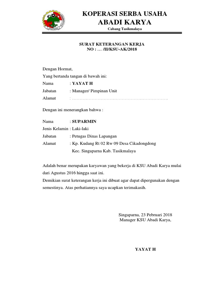 Surat keterangan kerja dikeluarkan oleh instansi dengan tujuan yang jelas. Contoh surat keterangan kerja paling mudah dan lengkap, dijelaskan secara menarik dan terperinci dengan menggunakan gaya bahasa yang mudah dipahami, sehingga bisa membantu memudahkan anda untuk mempelajarinya lebih dalam lagi. Fungsi dari surat keterangan kerja ini berbeda dengan surat lamaran kerja. Surat keterangan ini dibuat oleh staff dari perusahaan yang bertujuan. Jalan wotgandul barat no.31, kranggan, semarang tengah, semarang 2.