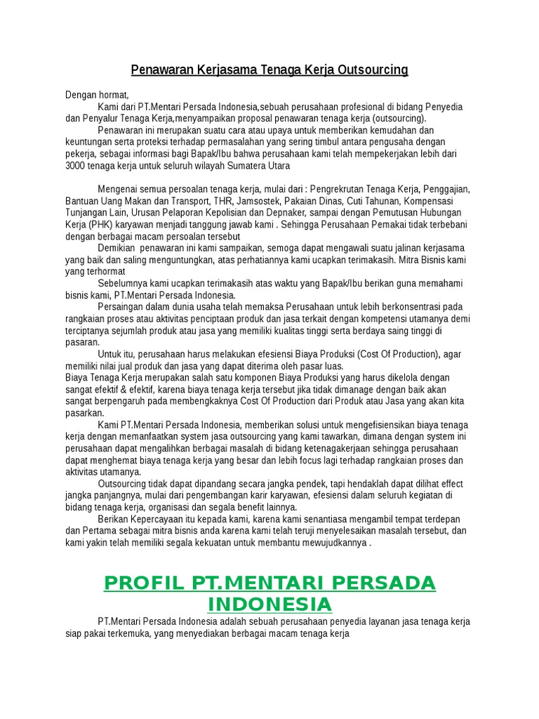 Contoh Surat Penawaran Kerjasama Jasa Outsourcing : Contoh Surat Penawaran Kerjasama Jasa Nusagates - Surat penawaran kerja sama dapat bermanfaat untuk menjalin kemitraan baru dan meningkatkan penjualan di saat yang sama.. Surat penawaran jasa biasanya dibuat dan dikeluarkan oleh perusahaan yang akan menawarkan suatu jasa atau layanan kepada pihak lain. Tujuan dibuat surat penawaran ini. Dengan hormat, dengan datangnya surat ini kami dari big talent agency ingin menawarkan jasa kerjasama dengan perusahaan yang bapak/ibu pimpin dalam bentuk penyediaan. Contoh surat penawaran merupakan salah satu dari surat resmi yang sangat penting bagi seorang pengusaha, pedagang, jasa dan barang. Surat penawaran kerja sama dapat bermanfaat untuk menjalin kemitraan baru dan meningkatkan penjualan di saat yang sama.
