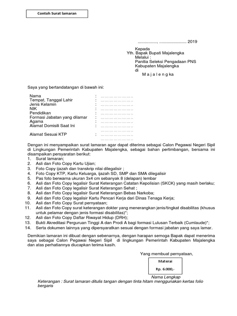 Peruntukan dokumen ini sebenarnya dikhususkan untuk pelamar cpns di kementrian pendidikan dan kebudayaan (kemdikbud) ri, namun tidak menutup kemungkinan dapat digunakan untuk. Di dalam membuat surat lamaran kerja tulis tangan mimin ada beberapa anjuran ini, supaya terlihat lebih profesional dan menarik seperti berikut ini atur margin, supaya tulisan terlihat rapi. Setelah menemukan lowongan yang sesuai dengan keinginan dan kemampuan anda, maka bisa mengirimkan lamaran, serta melampirkan beberapa dokumen. Agar tak salah dalam menulis surat lamaran, perhatikan panduannya serta contoh surat lamaran kerja tulis tangan dalam menulis surat lamaran kerja kamu disarankan menulisnya di kertas folio bergaris. Alangkah baiknya jika surat lamaran kerja kita ditulis dengan tulisan tangan untuk mempermudah hrd menilai kepribadian yang kita miliki.
